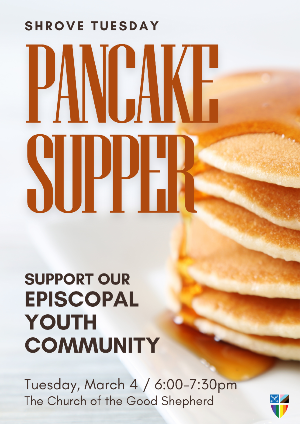 The Great Fast of Lent is almost upon us. Before we take the plunge, however, let's enjoy one last night of indulgence. The annual EYC Shrove Tuesday Pancake Supper will be held on March 4th from 6-7:30pm. Join us in Shepherd's Hall for a night of music, fellowship, and enough pancakes and bacon to keep you satisfied for forty long days. Admission is free but all donations go to support the Episcopal Youth Community. Games and activities for kids will be provided. Come on down and help us put the "gras" back in Mardi Gras.