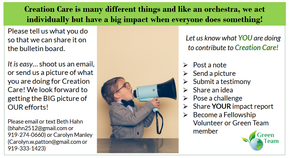 The Green Team is collecting batteries in the Parish Life Center lobby to dispose of them properly. Since November we have collected 113 pound of batteries! Thank you and keep up the good work! If you have questions about the Battery Recycling Project, please contact Beth Hahn