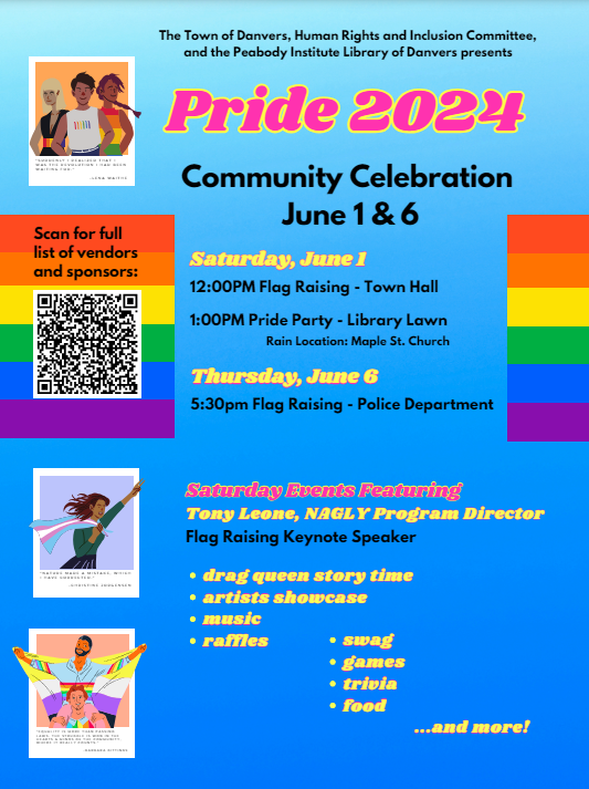 Danvers Pride Flag Raising and Festival is on Saturday, June 1st from 12 to 3:30 pm. The Social Action Committee will have a table at this event on the library lawn. Rev. Caro served on the planning committee and will attend. Please come and help us show our support to the LGBTQ+ community and show that we are a welcoming church.