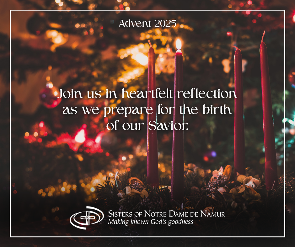 As we prepare our hearts for the coming of our Savior during the Advent season, we look forward to sharing spiritual reflections from Sisters across the Congregation, along with recommendations for weekly action from our Justice, Peace and Integrity of Creation office. Visit our website to find not only Advent prayers and reflections, but also a place to request the prayers of our Sisters. We thank the Congregational Mission Office for providing these meaningful messages of hope and grace.