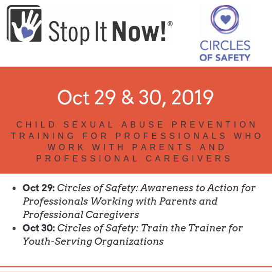 Circles of Safety: Awareness to Action for Professionals Working with Parents and Professional Caregivers and Train the Trainer for Youth Serving Organizations.