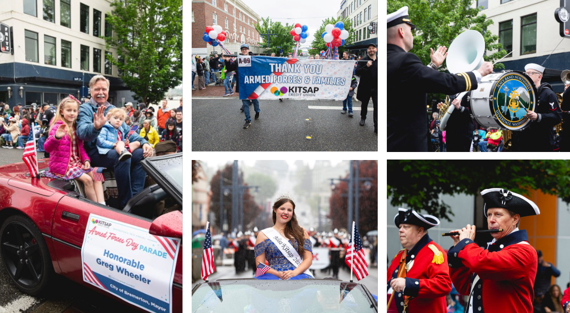 Downtown Bremerton was awash in red, white and blue on Saturday for the 78th annual celebration of Armed Forces Day. Despite scattered showers throughout the morning, the streets were lined with locals and visitors out to honor Kitsap's military community. The parade showcased nearly 150 entries coming from as far away as Wenatchee. The Armed Forces Day Parade is held every 3rd Saturday of May in Bremerton.