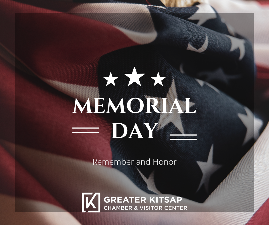 In observance of the Memorial Day holiday, the Greater Kitsap Chamber & Visitor Center offices will be closed on Friday, May 23rd and Monday, May 26th. | | |