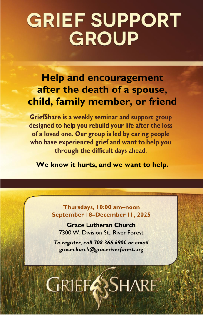 Where: Fellowship Hall, Grace Lutheran Church, 7300 Division St, River Forest