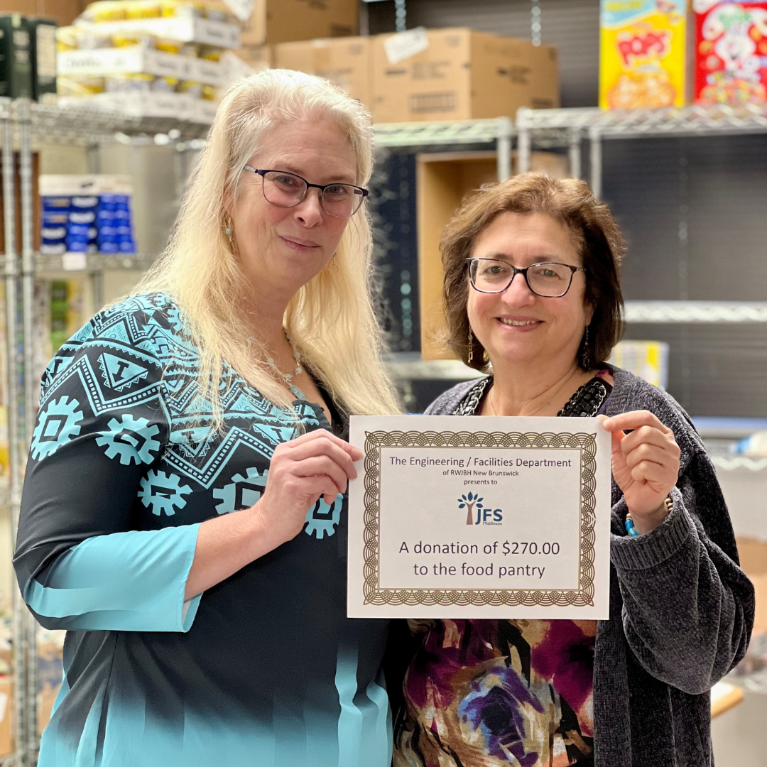 Each year the Engineering/Facilities Department at RWJBH New Brunswick selects a community organization or nonprofit to support. This year, we are grateful they have chosen JFS' Kosher Food Pantries to extend a helping hand in ensuring our pantry shelves are stocked. In response to our urgent call for funds to support year-end distributions, their compassionate donation is helping us meet the needs of local families this holiday season. Heartfelt thanks to the team for choosing to support JFS and our community in such an impactful way.