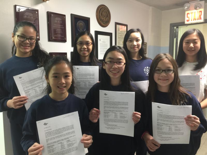 Rose Constabileo, Tristan Lee (5th grade), Trinity Lee (8th grade), Ms. Cavallone, Bernice Li (1st grade) and Zhirong Li. Not pictured is Wai Lun Ng