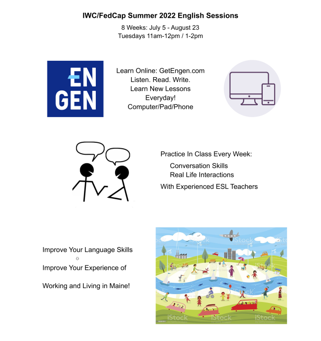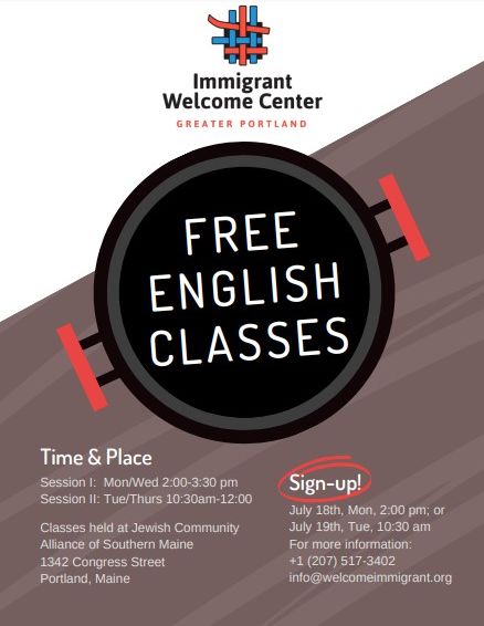A month ago, GPIWC, in partnership with In Her Presence and South Portland Adult Ed, began offering free in-person English classes at the Congregation Bet Ha’am in South Portland. This is in close proximity to the hotels where many asylum seekers from DRC, Angola and Haiti live, making it easy for them to walk to the classes. Similarly, a class was held at a coffeeshop near Motel 6, in Portland. Earlier this month, a series of hybrid and in-person classes, free of cost, started at the Jewish Community Alliance. Added to all these English language opportunities, we welcome walk-ins to sign up for iEnglish via the EnGen platform at GPIWC’s language lab.