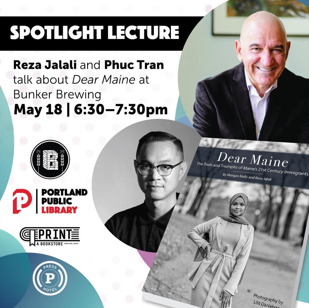 Reza Jalali and Phuc Tran discussed Dear Maine, a book co-authored by Jalali and Morgan Reilly, at Bunker Brewing.