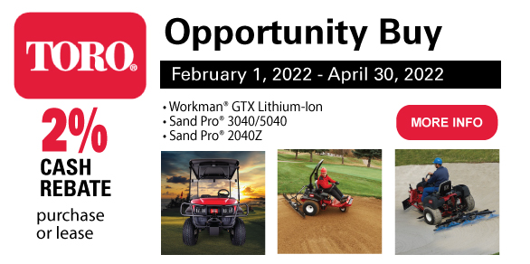 Receive a 2% cash rebate on the purchase or lease of Toro Workman GTS, Sand Pro 3040/5040 and Sand Pro 2040Z.