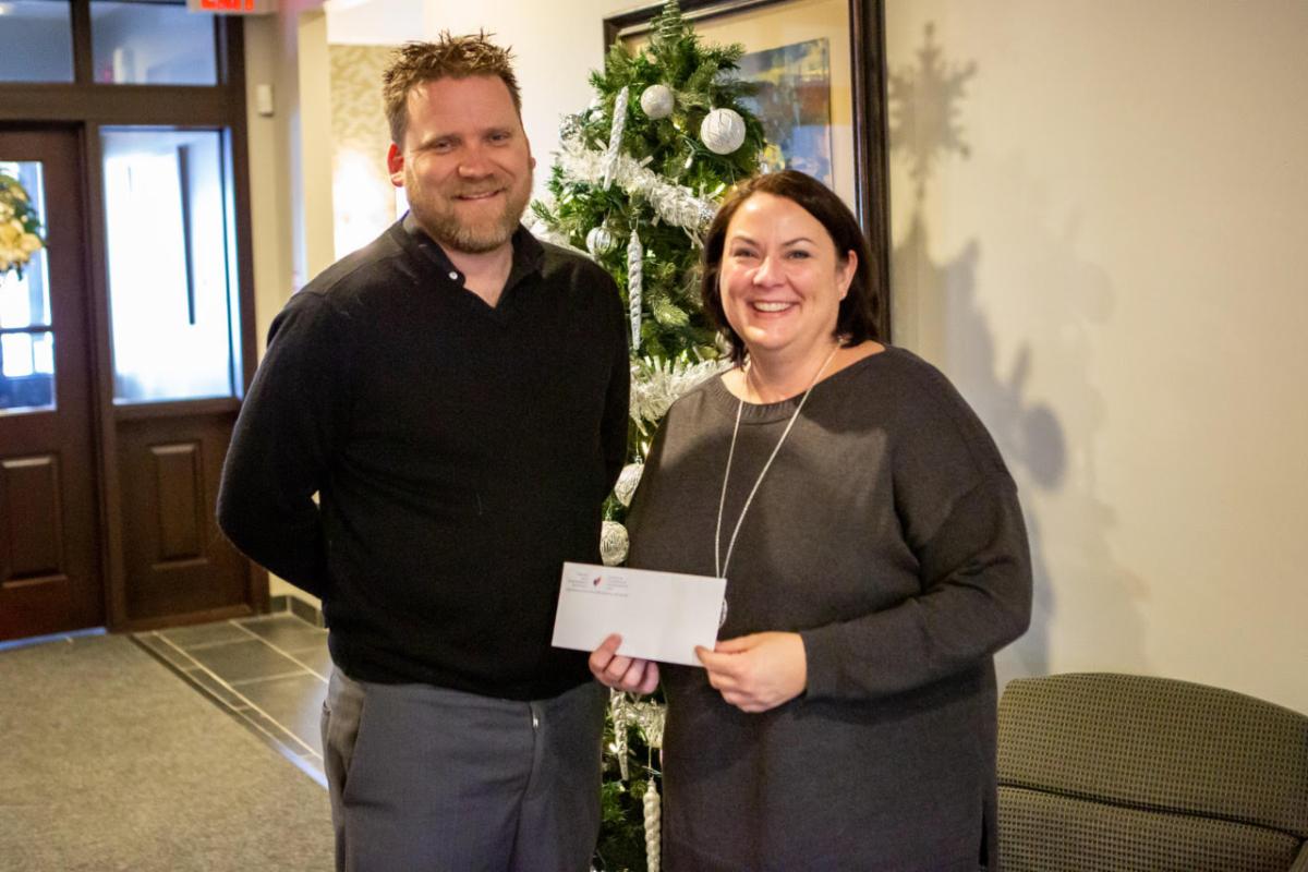 Bill Green, AGS, Superintendent at Cutten Fields receives his second Toro rebate cheque totalling over $9,000, from CGSA's Kathryn Wood.