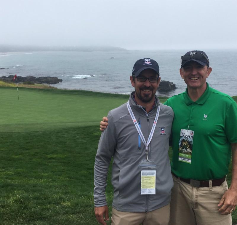 Canadian greenkeeping neighbours, Jayson Griffiths and Kevin Collier volunteering at the U.S. Open at Pebble Beach.