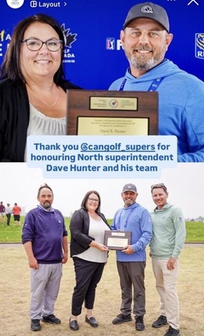 | | CGSA CEO Kathryn Wood, presents RBC Canadian Open host, David Hunter with his National Tournament plaque. | | CGSA Vice President, Tyler McComas (left), presents Matthew Choquette with his National Tournament plaque as he hosted the NextGen Prairie Championship at The Legends Golf Club. | | Photo above is Jeffrey Alexander (left), Superintendent at Manitou Ridge, middle is Kevin Thistle, CEO of the PGA of Canada and right is Drew Rachar, Director of Agronomy who just hosted the 84th PGA Seniors' Championship of Canada presented by GOLFTEC from June 15-18, 2025. Kevin presented the gentlemen with their CGSA National Tournament plaques! | | Morgan Creighton, Centre, Assistant Superintendent at Broadmoor Public Golf Course is one of the 31 women volunteers at the U.S. Women's Open. To read the full article click here. | | |