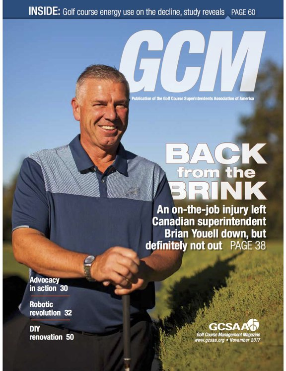 Brian Youell, MS, Superintendent at Uplands Golf Club wins GCSAA's prestigious Leo Feser Award. It is presented to the author of the best superintendent-written article published in GCM during the previous year. Brian receives a $300 stipend, all-expenses paid trip to the Golf Industry Show, and will have his name engraved on a plaque permanently displayed at GCSAA headquarters.