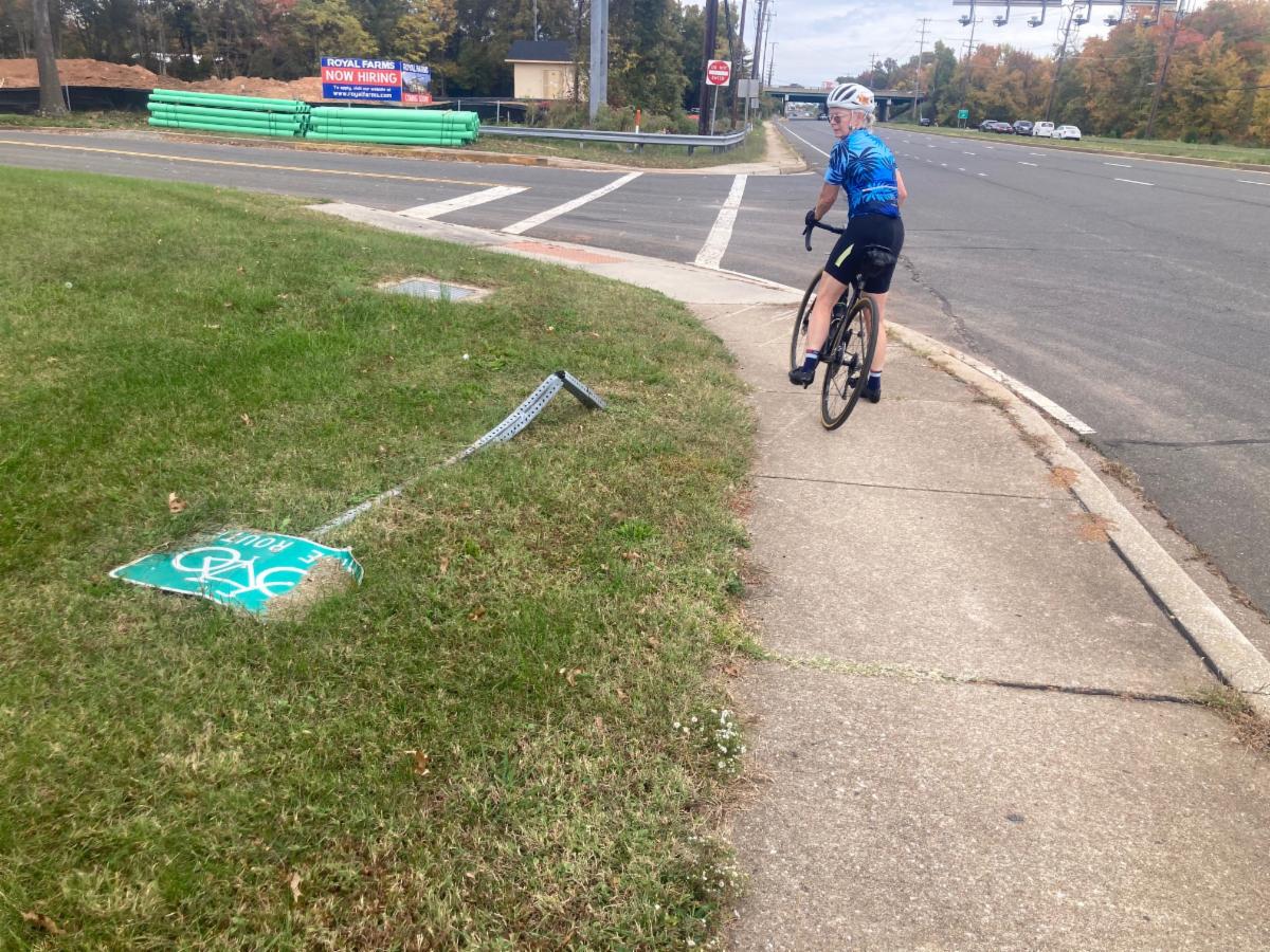 Basically there is no maintenance at all -- neither by the state, county or city -- on sidewalks along state roads in the Greenbelt area, and we don't have any protected bike trails or sidepaths yet. However, a clause in state law that requires localities to maintain sidewalks and sidepaths along state roads caused us a long delay in getting on the list for an MDOT SHA feasibility study for the GET. So we figured, let's just take that clause out so that future trail projects in our area could be evaluated more quickly! Our sidewalks will still be dilapidated, but maybe we can get some new trails built!