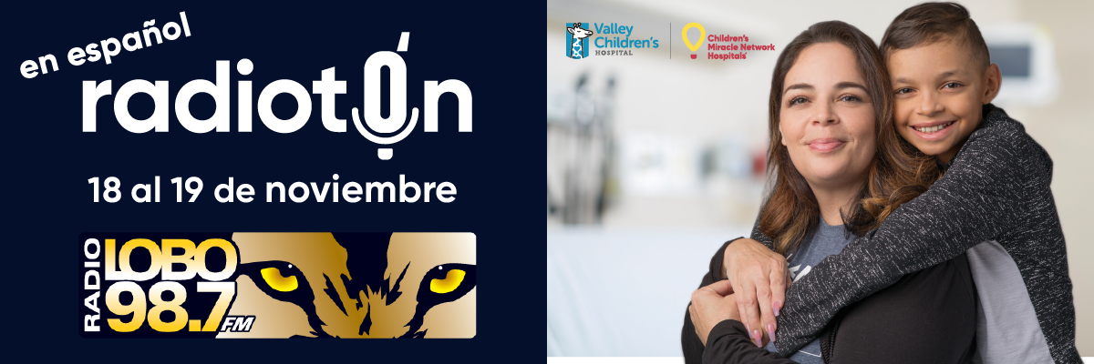 Our Radio LOBO Radiotó n en español is coming up Thursday, November 18 through Friday, November 19, 2021 from 6:00 a.m. to 6:00 p.m. Radio LOBO 98.7 FM will be live with your favorite DJs, Diana Miramontes, Armando Villanueva and Oscar Silva . They'll be airing interviews with patients and families sharing their incredible stories of hope and healing, and providing this generous community with opportunities to support Valley Children's Hospital. Thank you to Radio LOBO for your partnership. You are making a tremendous difference in the lives of Central Valley kids.