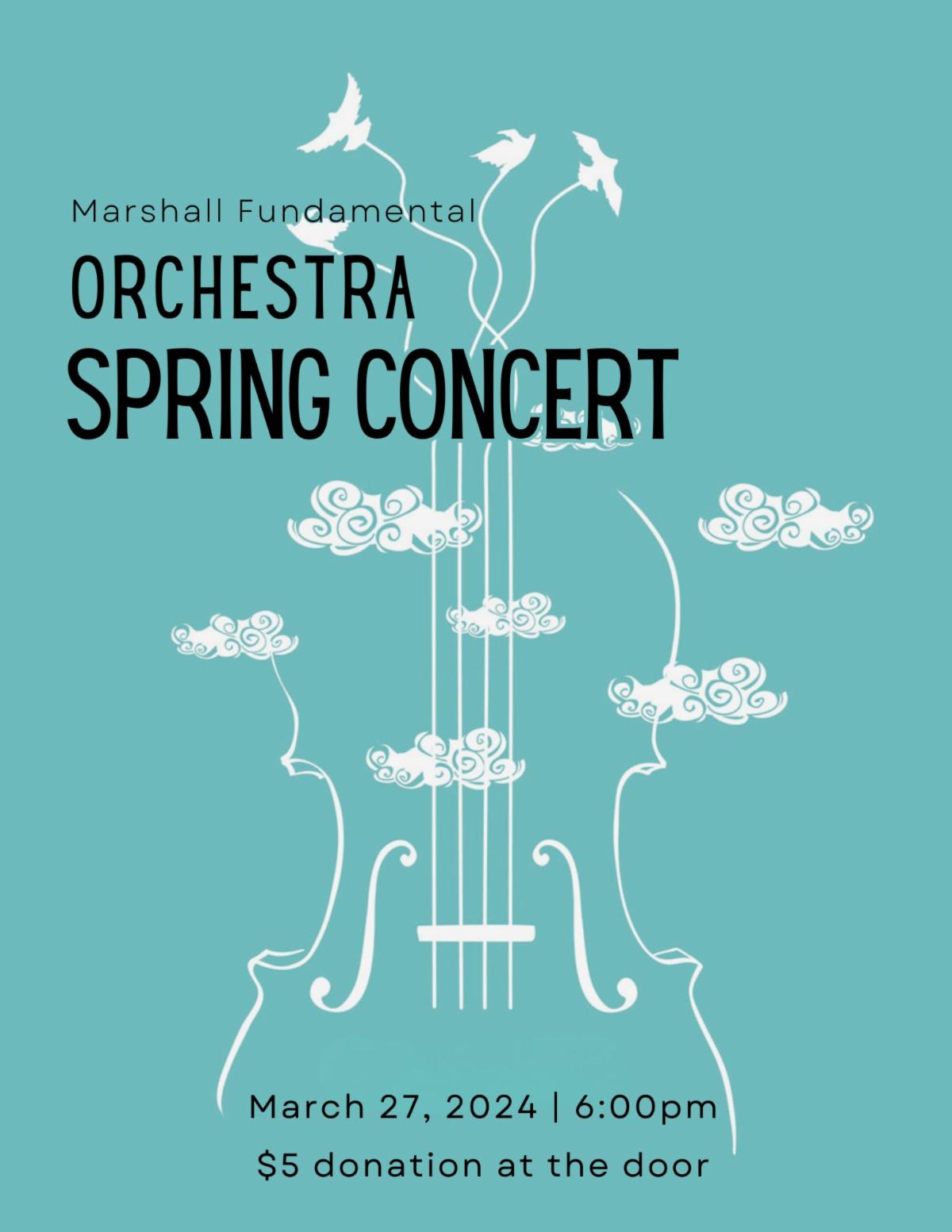 - Orchestra Spring Concert 6 pm to 7:30 p.m. in the Auditorium