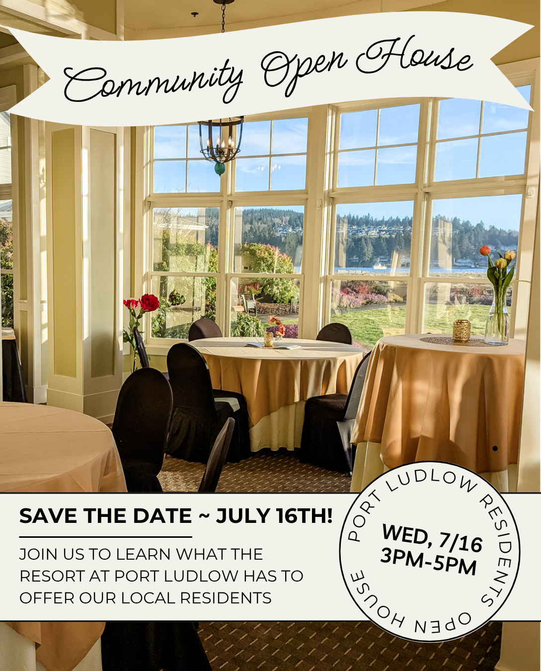 We’re opening our doors to our Port Ludlow neighbors! Join us for a special afternoon of community connection, resort highlights, and a taste of what we have to offer right in your own backyard.