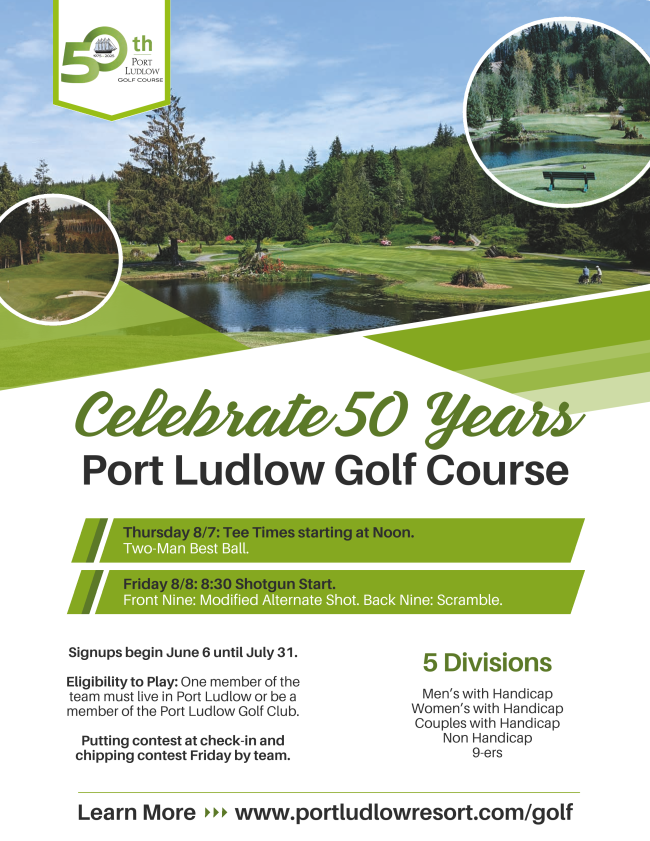 Join us for a special two-day event in honor of the 50th Anniversary of the Port Ludlow Golf Course! Whether you're a seasoned player or just love the game, we invite you to swing into the celebration.