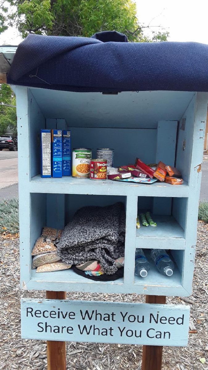 For almost ten years Grace Lutheran Church in Colorado Springs, Colorado has been sharing non-perishable food, personal hygiene items and winter wear gloves and hats with our neighbors in need. Our blessing box is stocked with 15 to 20 items every other day. These donations come from our congregation. We also have many people in our neighborhood who contribute food and other things to the Blessing Box.