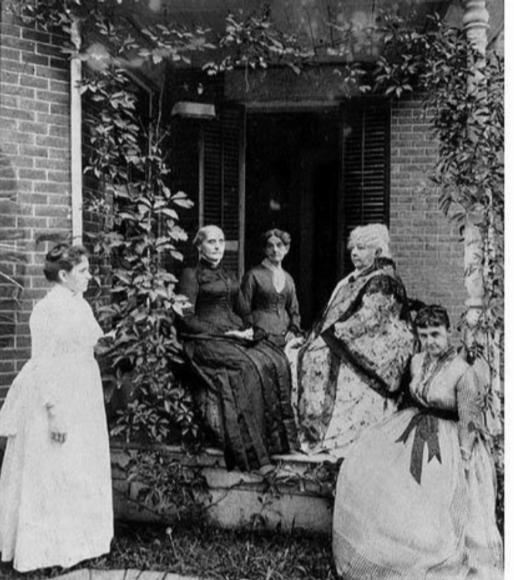 | | Abigail Scott Duniway with Susan B. Anthony, Elizabeth Cady Stanton, and other leaders of the women's suffrage movement. |