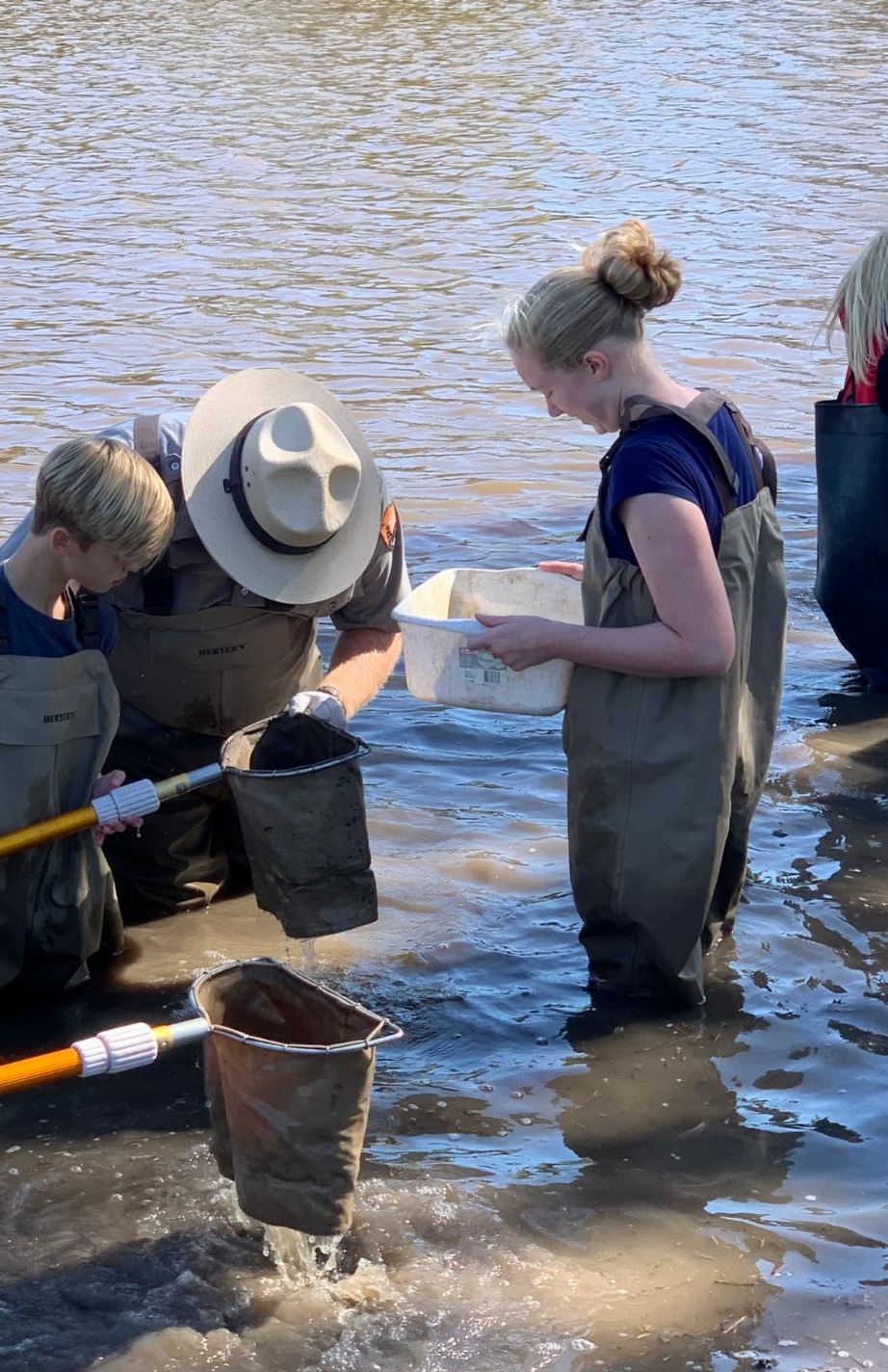 On Tuesday, October 8, 2019 Mrs. Schaaf's Beatrice Middle School science class assisted Natural Resource Specialist Jesse Bolli in collecting dragonfly larvae for the Dragonfly Mercury Project. The Dragonfly Mercury Project is a nationwide citizen science project where scientists use the data to determine areas at risk from mercury contamination. The larvae were collected from Graff Pond by the Homestead Heritage Center. Once they were collected they were measured and froze so they could be shipped off to a lab where they will be analyzed to determine how much mercury they have accumulated in their bodies. The research helps the NPS understand the risks posed by mercury to park resources.