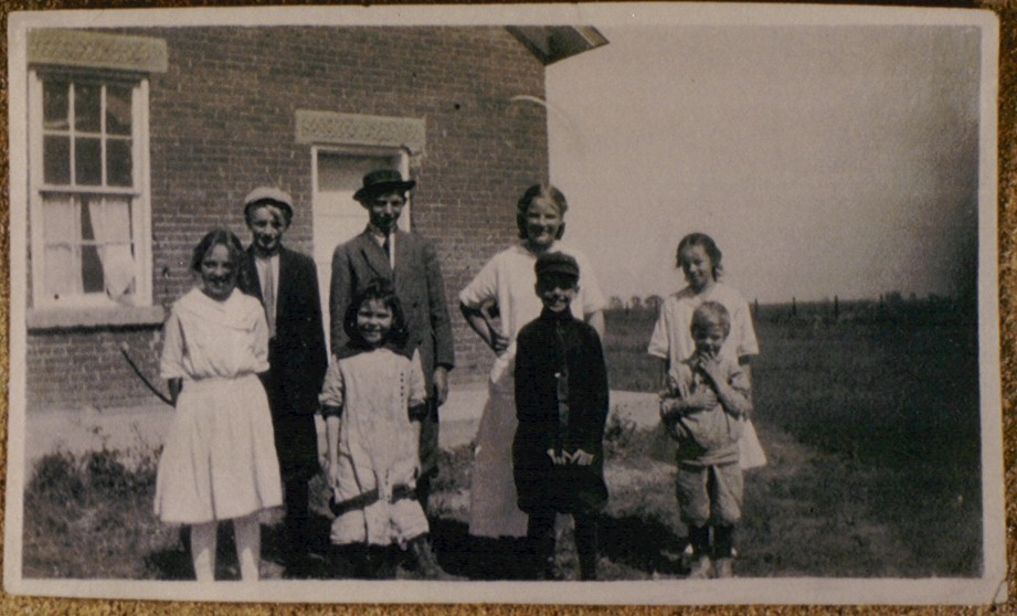 She told us there was a line of 15-20 posts connected with a chain along the east side of the school yard near the road. They were spaced about eight feet apart with alternating directions, so the horses would not kick each other. This was new information to the current employees at the park, even though these hitching posts would have been used while the monument was in operation. The best photograph we have of the posts is a blurry line in the background of a school photo dating around 1916. We know the posts were being used when Judy's father, Forrest Maranville, attended the school during the late 1910s' to early 1920's.
