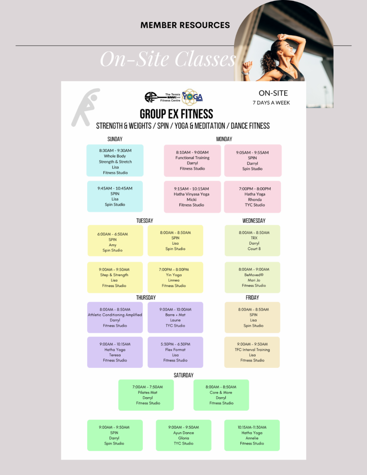 Group Ex Fitness, Strength & Weights, Spin, Yoga & Meditation classes are included in your