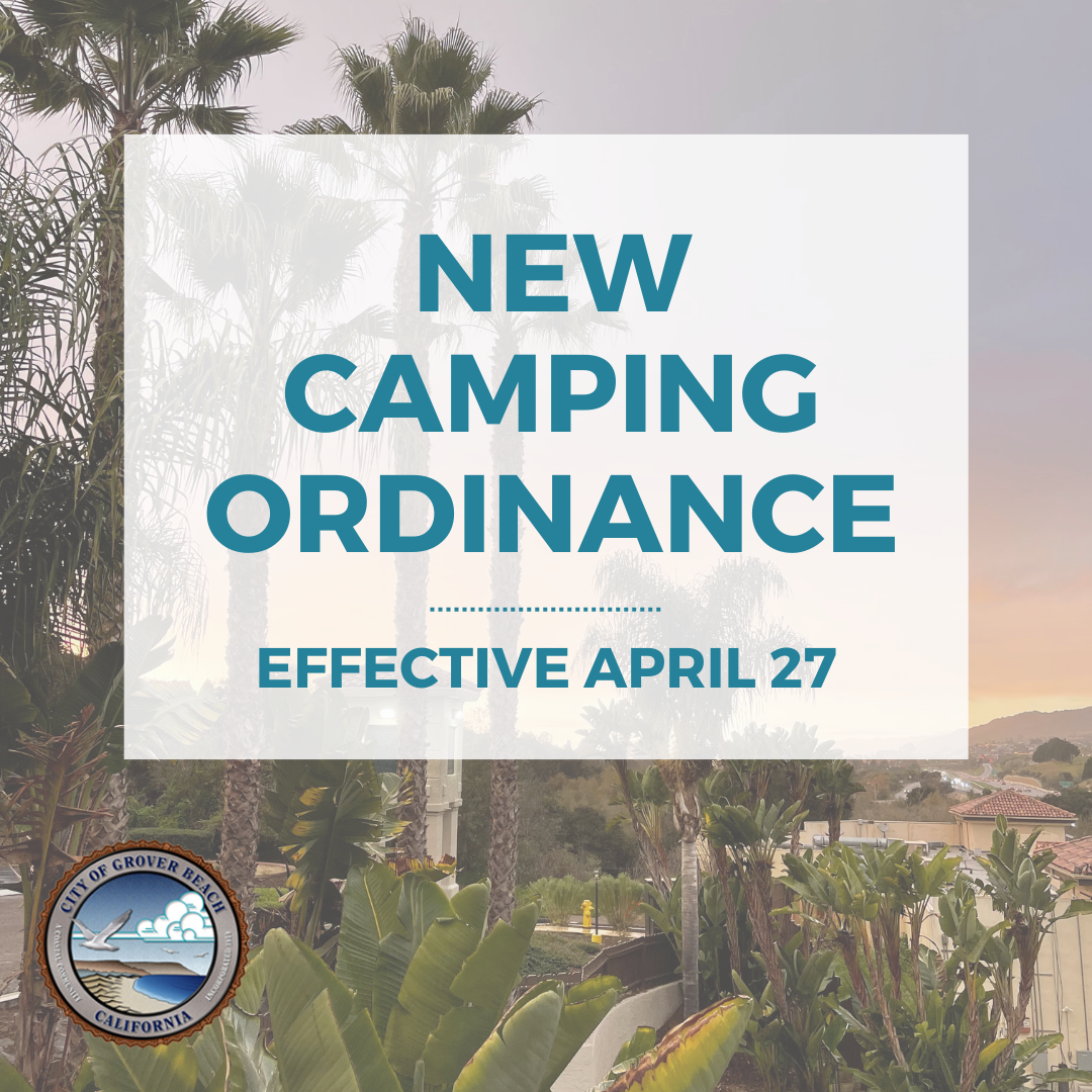 At its meeting on March 27, the Grover Beach City Council adopted an ordinance to regulate camping and vehicle habitation on public rights-of-way and public and private property. The ordinance is effective April 27. This action comes as part of an ongoing effort to address homelessness throughout South County.