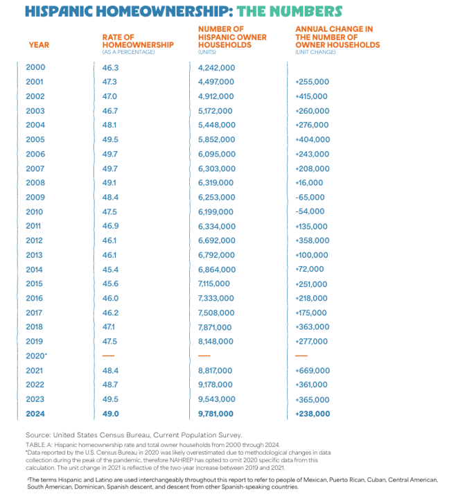 The National Association of Hispanic Real Estate Professionals (NAHREP) released its 2024 State of Hispanic Homeownership Report, revealing that Hispanic Homeownership reached a record high of 9.8 million households in 2024. Despite this milestone, the Hispanic homeownership rate declined for the first time in a decade, dropping by 0.5 percentage points to 49%. The report attributes this decline to factors such as rising home prices, high interest rates, and the rate of Hispanic household formation outpacing homeownership growth. Policy priorities such as, increasing housing supply, expanding access to capital for Hispanic homebuyers and small businesses, and implementing new credit score models are highlighted through NAHREP’s key policy priorities.