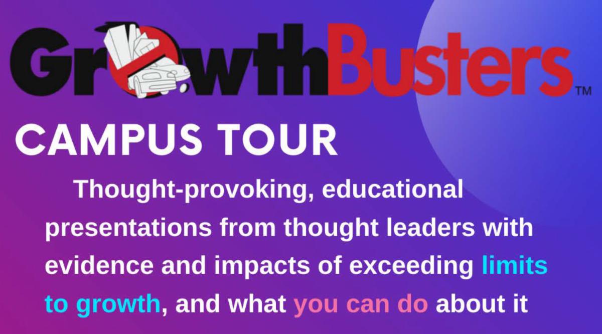 Our GrowthBusters Campus Tour continues, in which we help university groups and classesbook brilliant speakers to share what they know about various aspects of ecological overshoot. Our most recent booking gave a college class at Dalhouse University in Nova Scotia access to Bill Rees, the father of ecological footprint analysis. Learn about the tour here, or reach out to me to organize a lecture.