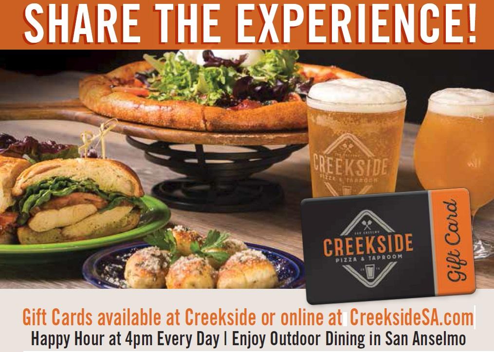| | Creekside: Proud member of the San Anselmo Chamber of Commerce and the Marin County Visitor & Convention Bureau, California Restaurant Association, supporters of San Anselmo Eats, San Anselmo Beautification Committee, World Pizza Champions, Slice Out Hunger, advocates of our local community, schools, arts, enrichment and music programs and best-practices for conservation, recycling, and carbon-neutral net zero planet. If you like what we're doing, please share this email with friends, family, and community, and Thank You for Encouraging our Behavior. | | | | |