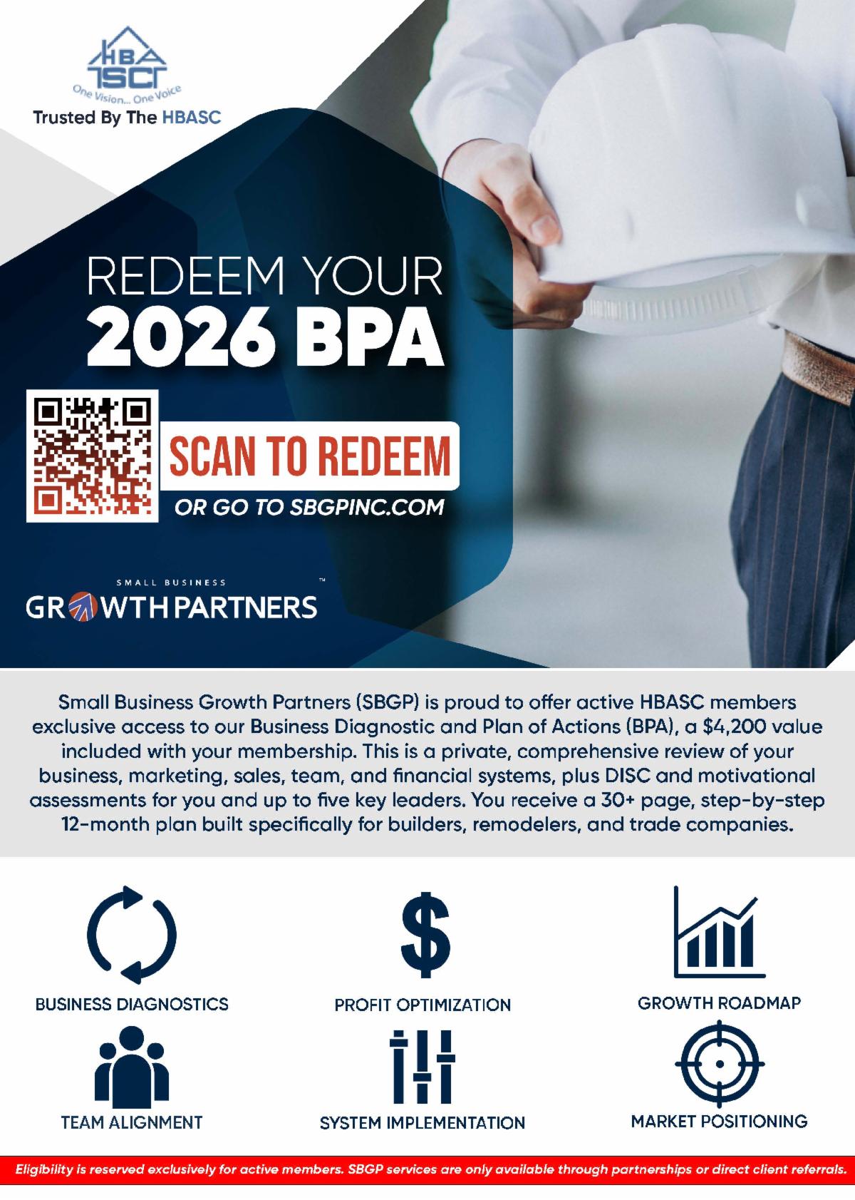 REMODELERS WANTED! Many of you do your fair share of remodeling in addition to new construction home building. Our Remodelers Committee will meet once a quarter at the HBA Spartanburg office @ 1pm on the following dates: 3/2, 6/1, 9/14, & 11/2. If you are interested in being part of this committee, please let me know. Some general topics of discussion: codes & grandfathering of existing conditions; subcontractor reviews & referrals; architect reviews & referrals, share best practices; historical house regulations and how to navigate; material abatement (lead/asbestos/etc.).