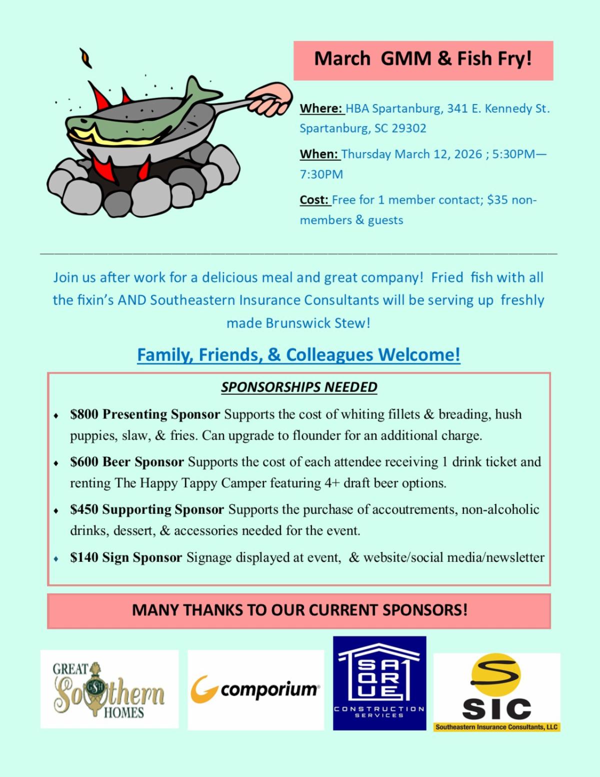 March 12th we will be holding a Fish Fry at our office! Plus, Southeastern Insurance Consultants will be making Brunswick Stew! We are still in need of sponsors for the event. Please see the list below and reach out to secure your spot today!