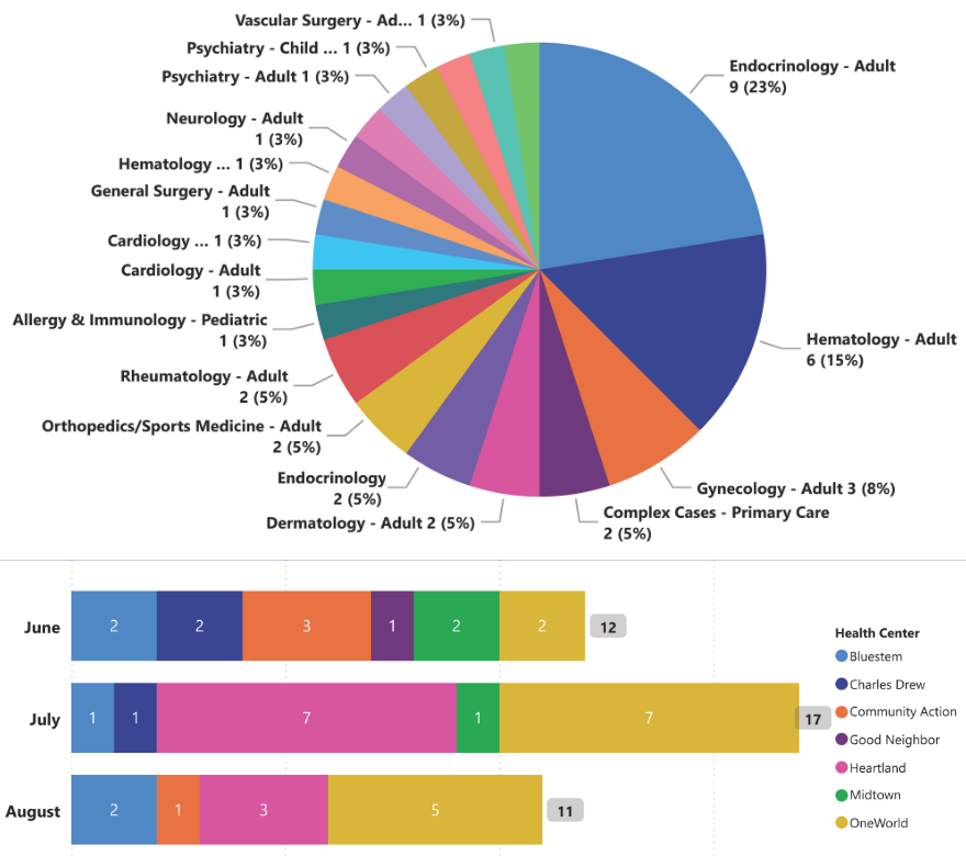 HCAN & Nebraska's health centers are piloting the e-consult service Maven Project to try to help increase access to specialty care for all patients. In August, 11 total e-consults were completed. Data for the month of August is shared here: