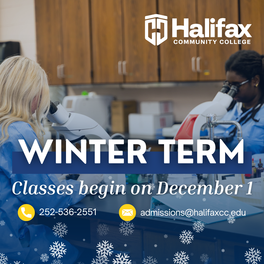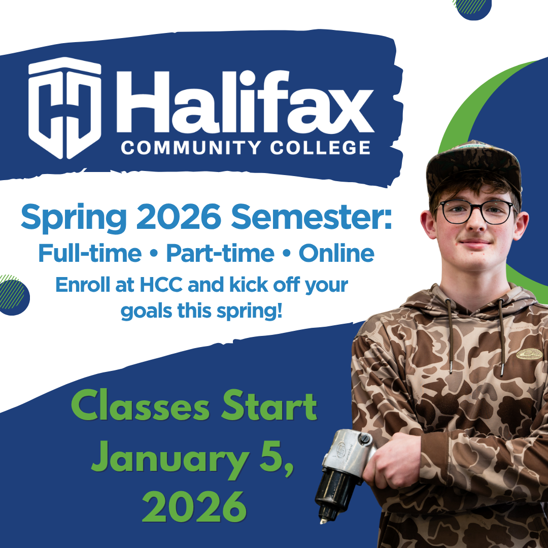 As 2025 draws to a close, I am grateful for a year defined by growth, resilience, and renewed purpose at Halifax Community College. Each success, partnership, and achievement reflects our collective commitment to transforming lives through education and opportunity. I am appreciative of our faculty and staff's dedication to our students' success. As we welcome the new year, I encourage you to take the next step in your journey by starting fresh or reconnecting with us to finish what you started. Registration is now open for the Winter Term, which begins on December 1, 2025, and the Spring 2026 semester, which begins Monday, January 5. Together, let us embrace the promise of a new year and the opportunities it brings.