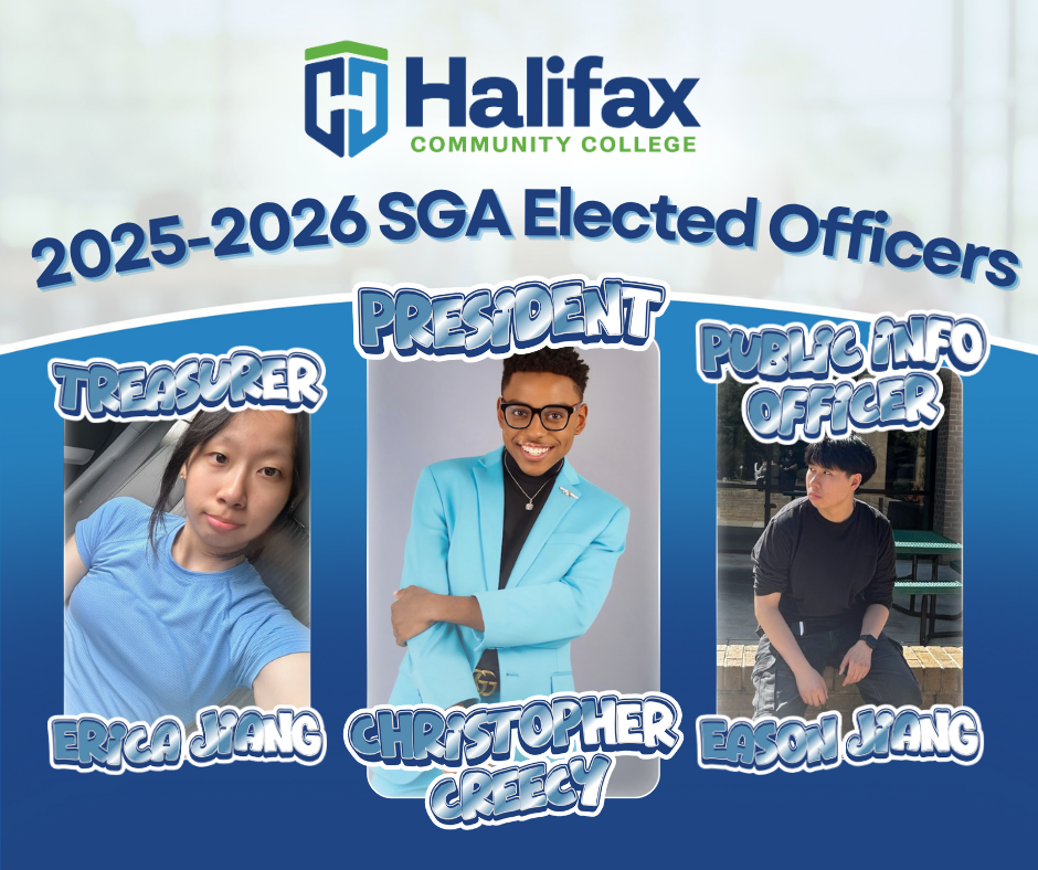 | | HCC proudly announces the elected officers for the 2025–2026 Student Government Association (SGA), who will lead student advocacy, engagement, and representation throughout the upcoming academic year. Halifax Community College congratulates CJ, Erica, and Eason on their selection and looks forward to the leadership, innovation, and student advocacy they will bring to the 2025–2026 academic year. | | |