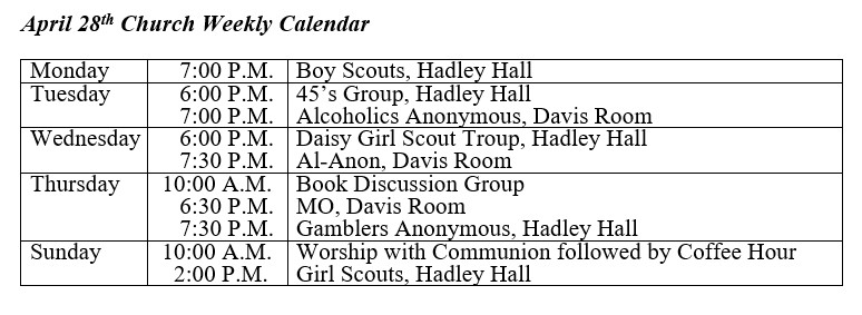Church Office hours: Monday, Wednesday, and Thursday 9:00am to 2 pm