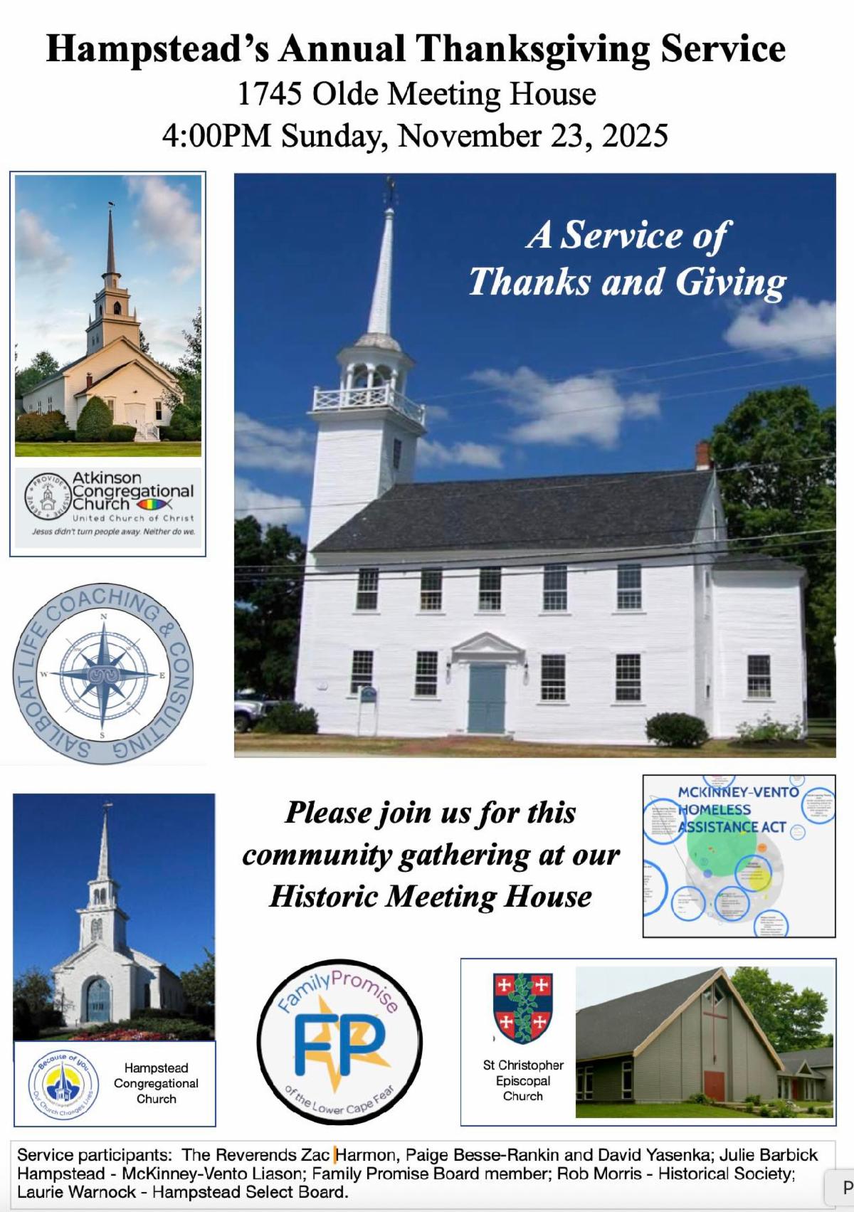 The Sonshine Soup Kitchen needs volunteers to prepare and package the food for "To Go Meals." We partner with Atkinson Congregational Church once a month on the 4th Wednesday of the month to help out from 3-6pm.