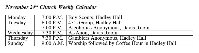 Every Sunday through November 23rd, please bring a canned good or other non-perishable food item to the church. Place these items on the alter as we watch our congregation meet this significant challenge of food insecurity.