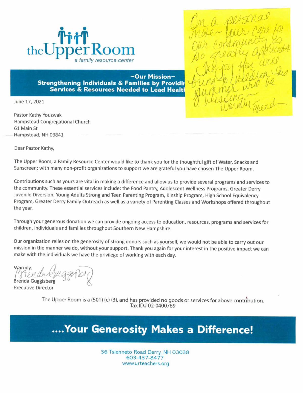 Emails are often sent, saying they are from Pastor Kathy or another staff member. She (or they) will never send out a generic email--she'll address it to your name. She will never ask you for money/gift cards over email. Also, it will always have her signature line on the bottom with her phone number/address. If in doubt, please call the church or send an email to pastorkathyucc@gmail.com.