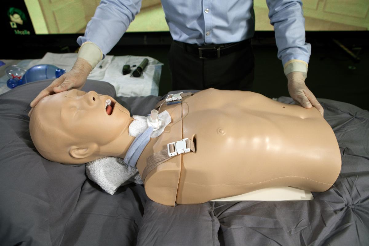and Practice Advisor, HCCI, demonstrating Gastrostomy Tube Replacement
