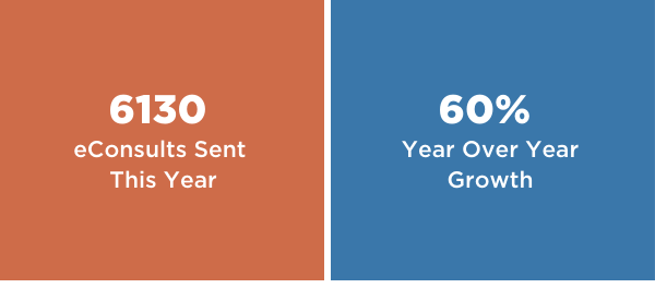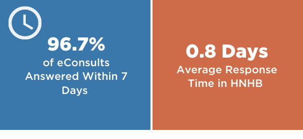 - With 215 primary care providers actively using eConsult, more than 6000 eConsults were sent on behalf of HNHB patients in the last year – a 46% increase over the previous 12 months.