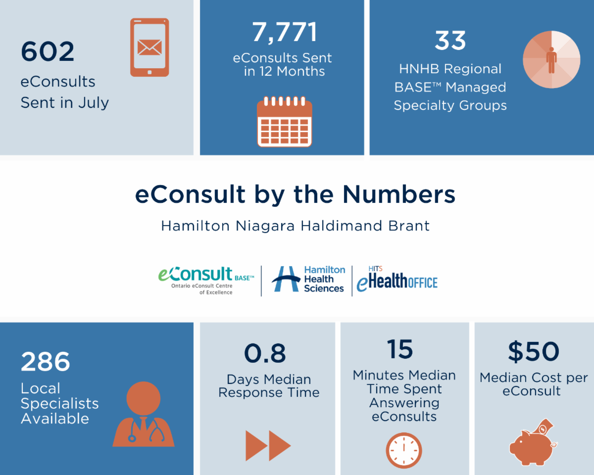 By adding this form to the patient record, all pertinent patient demographic details will be populated into the form automatically. A field to note the desired specialist/specialty and a field to enter your clinical question has been provided. Once the form is complete, a physician or nurse practitioner can send a message to their delegate to initiate the eConsult on OTNHub. Delegates can export progress notes from the EMR into PDFs which can be attached to the eConsult on OTNHub. Once the eConsult is complete, delegates can download the full interaction and attach it to the patient record.