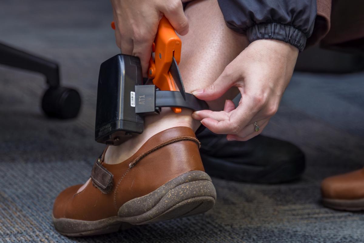 The monitors are fitted with a strap like a big zip tie and have a tamper pin so the strap can’t be forced open without sending an alert to the monitoring company, which would then contact Starks or another one of the JEMS. An alert also goes out if the strap is cut. Removing or interfering with the monitor is a third degree felony. Whatever happens – whether the battery dies, the monitor is cut, or the wearer enters a restricted zone – an alert gets sent within seconds. “If they cut it, they don’t get very far,” Starks said. Their location can be monitored 24 hours a day.