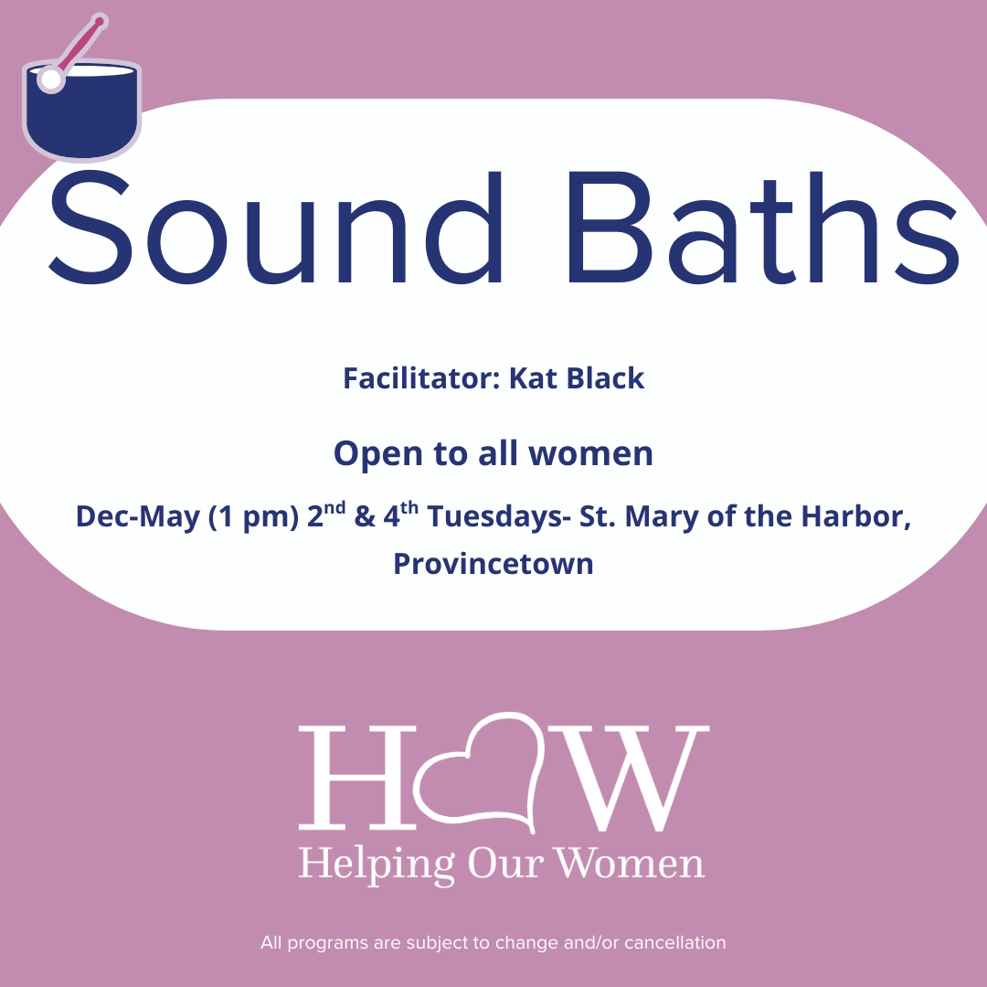 Join us at the beautiful St. Mary of the Harbor in Provincetown and let soothing vibrations wash over you, quiet the noise, and bring you back to center. Whether you're carrying stress, navigating a health journey, or simply need a moment that's just for you — this is it. All women welcome. Always.