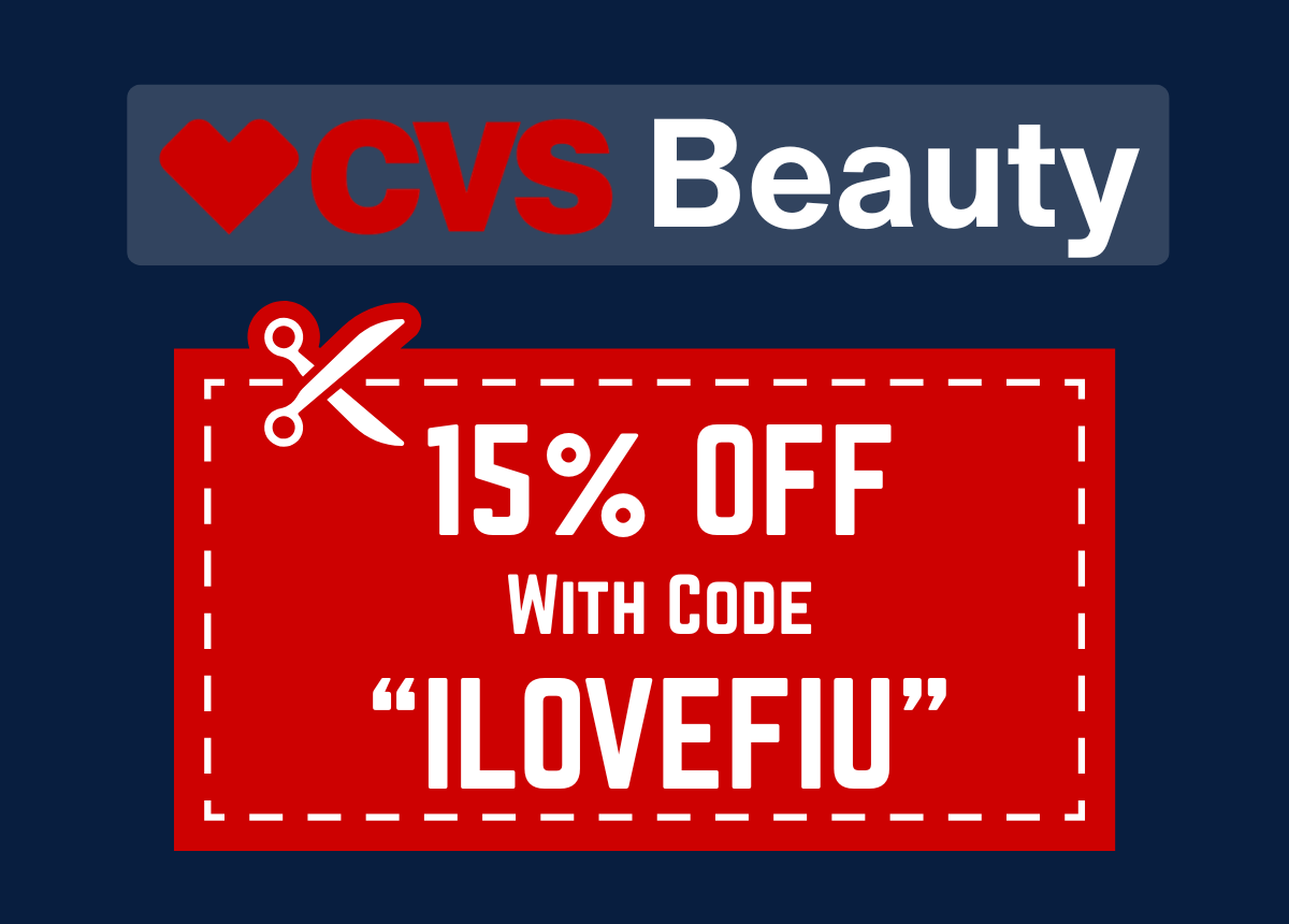 The CVS Beauty machine is located in the vending bank near Wayki's and the Cyber lounge in GC. To celebrate this new venture, they are offering 15% off all purchases between now and Sunday, November 30. When checking out, use the code "ILOVEFIU" to claim the discount.