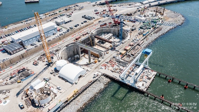 Hampton Roads Connector Partners (HRCP) crews are busy at work re-assembling Mary, the Tunnel Boring Machine (TBM) on the South Island of the Hampton Roads Bridge-Tunnel (HRBT) in preparation to begin boring.