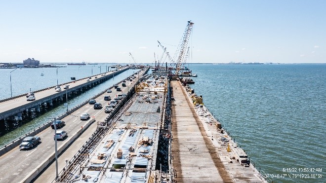 Motorists will continue to see the impressive work being completed on the South Trestle superstructure that will one day carry eight lanes of traffic to/from the South Island and Norfolk. The construction of this new structure is more than 7-8 feet higher than the present structures and is designed to be safer for motorists as well as offer better protection from storms and sea level rise.