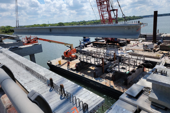 Driving through the project, you might wonder why some of the piles in the water are steel while others are concrete. The answer is the steel pilings are temporary; these are put in place to accommodate temporary traffic shifts and will be removed once the permanent structures are completed. While temporary, they are safe, but are quite easier to remove from the seabed versus concrete.