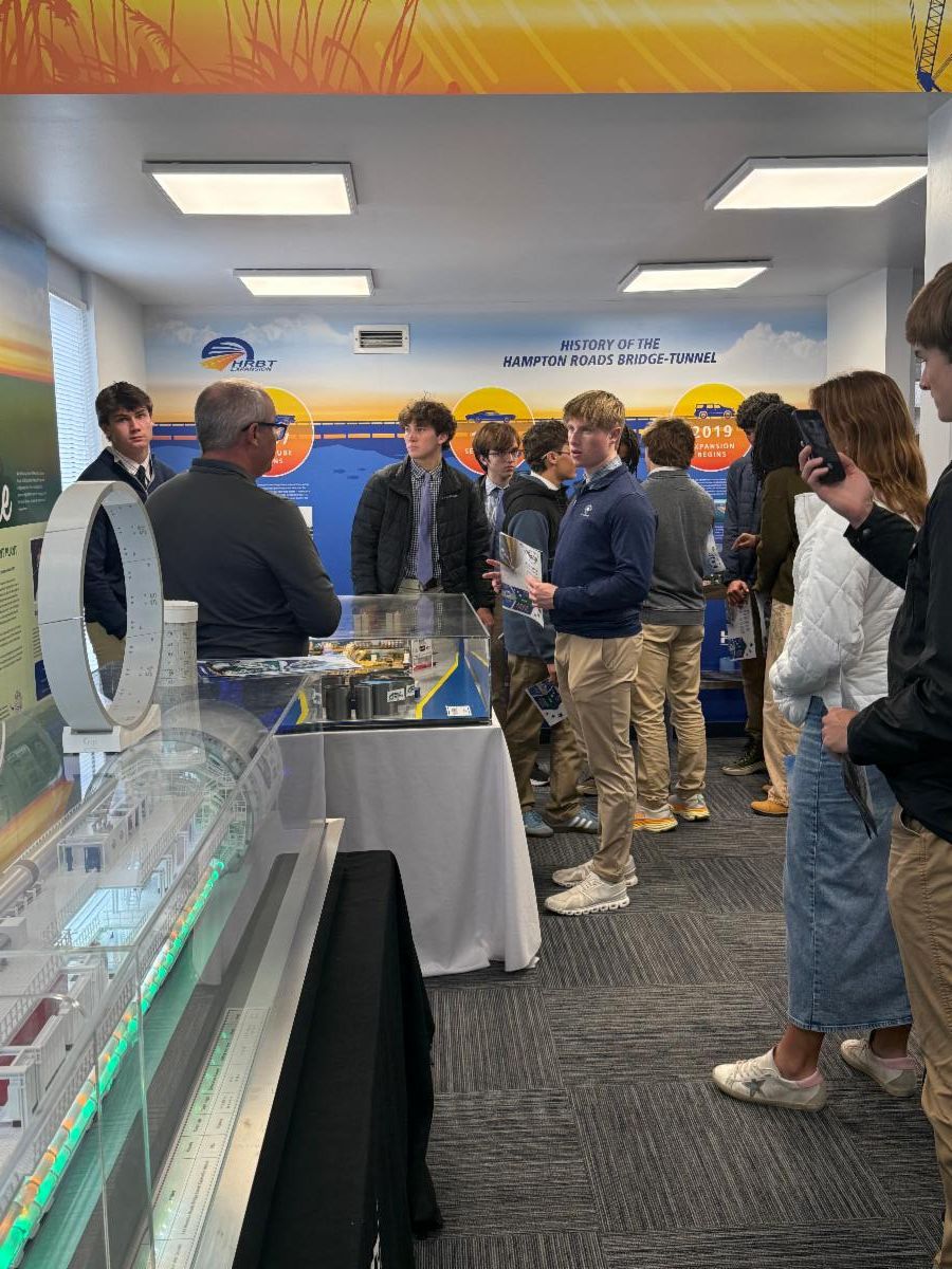 Seniors from an engineering class at Norfolk Academy (NA) recently visited the welcome center. The future STEM leaders learned about project design challenges, including ensuring traffic flow during construction and space limitations for staging large equipment like Mary The TBM.